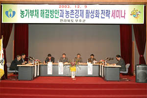 무주군 주관으로 마련된 이번 세미나는 농가부채를 농가 개인이 아닌 정부와 지방자치단체간의 문제로 인식, 지방정부의 역할을 재정립하고 실질적인 대안 및 대책을 마련, 농업인의 삶의 질 향상을 도모키 위해 열렸다.