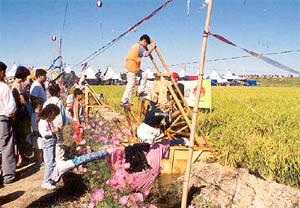 지난해 지평선축제중 어린이들이 무자위를 돌리는 체험을 하고 있다. (desk@jjan.kr)