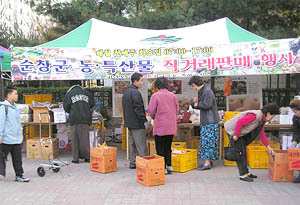 지난 6일 서울 신내동 중앙공원에서 실시된 '순창의 날' 농특산물 직거래 행사에는 청정지역 순창에서 생산되는 전통고추장을 비롯한 느타리버섯, 곶감, 밤, 오이, 고사리, 고구마, 햅쌀, 콩 등 42개 품목의 농특산물이 선을 보였으며 설 명절을 대비한 도시민들의 제수용품이 주를 이루었다.