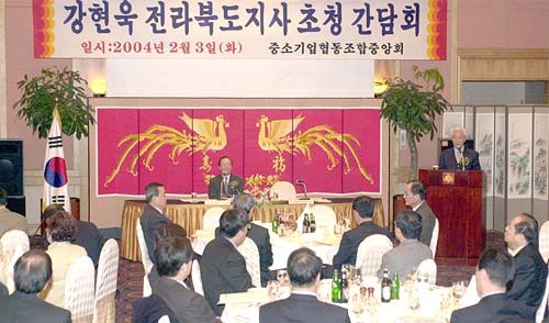 강현욱 지사와 김영수 중소기업협동조합 중앙회장은 "중소기업의 애로 해소를 위해 즉각 시정할 사항은 바로 조치하고 제도 개선에 노력하겠다”면서 "어려운 여건에서도 기업 경영에 매진, 지역경제 활성화에 더욱 힘써달라”고 당부했다.