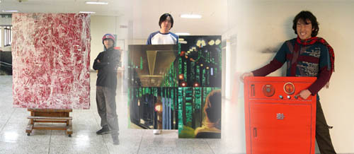 'art attack'을 주제로 '미술3인전'을 여는 대학생 이현우ㆍ채연석ㆍ김영봉씨(왼쪽부터) (desk@jjan.kr)
