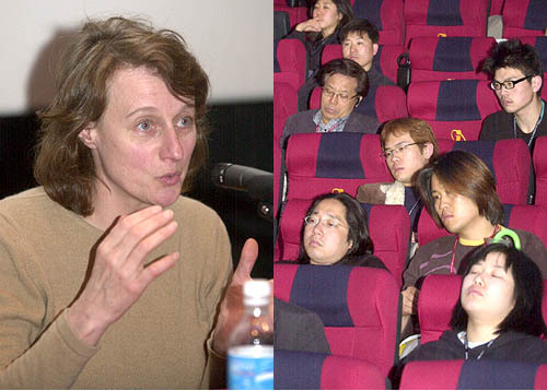 촬영감독 마스터클래스 첫날인 27일 카롤린 샹페띠에 감독(왼쪽)의 행사장에서 관객들이 감독의 작품세계를 음미하고 있다.../안봉주기자 안봉주(bjahn@jjan.kr)