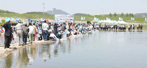 방류행사에는 섬진강 토종어류인 4∼5cm된 은어 25만마리와 자라 2년생 3천마리, 참게 20만마리를 유치원생 및 초·중학생들이 대야에 담아 직접 방류함으로써 자연과 환경의 소중함을 일깨우는 좋은 체험의 장이 됐다.