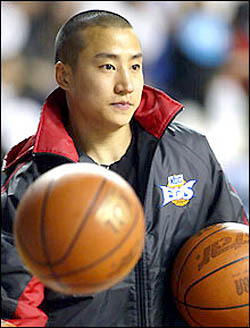 1백70㎝에도 못미치는 작은 키에도 불구하고 지난 2월 KBL 신인 드래프트에서 예상을 깨고 전주 KCC에 2라운드 4순위(전체 14위)에 뽑히며 화제를 불러 모았던 이항범.