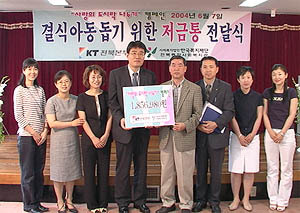 전북본부는 지난해 12월부터 지난달까지 KT플라자창구 등지에 '사랑의 도시락 나누기' 저금통을 마련하고 모금한 93만원에 사랑나눔기금을 보탠 186만여원을 7일 한국복지재단 전북지부에 기탁했다.