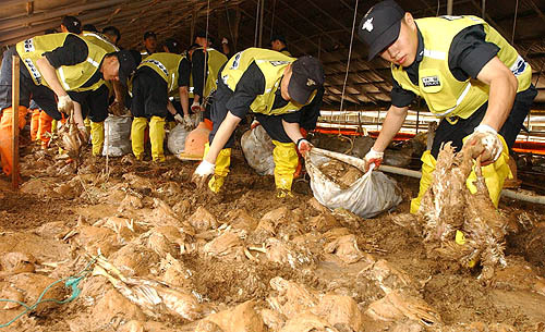 전북경찰청 129방범순찰대 임남희 대장을 비롯한 대원 1백20여명이 22일 집중호우로 2만3천여마리의 닭이 폐사한 완주군 이서면 이문리 한 농가에서 폐사 육계 매몰작업을 하고 있다.../이강민기자 이강민(lgm19740@jjan.kr)