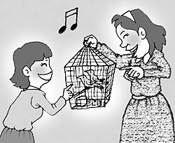 봄이 되면서 내게는 새 두 마리가 왔다. 엄마께서 새 두 마리를 사 오셨다. 3학년이 되어 부쩍 책상에 앉아 공부하는 시간이 많아진 나에게 옆에서 밉지 않게 쫑알거리는 새들은 곧 나의 말동무가 되었다.