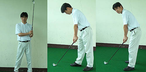 3. 머리를 돌지 않고 목표를 바라보고, 손목의 힘을 빼기 위한 웨글(waggle) 동작을 해주고 마음에 안정을 찾는다.