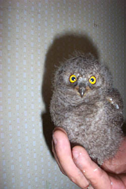 전주시 동완산동에 사는 박모씨(52)는 지난 1일 오후 완산칠봉을 산책하던중 거동도 못할 만큼 탈진한 야생조류 새끼 한마리를 발견했다. 소쩍새로 보이는 이 조류를 손안에 쥐어들고 집으로 돌아온 박씨는 갈은 돼지고기 등을 먹여 기력을 회복시킨 뒤, 2일 오전 이같은 사실을 알리기 위해 유관기관에 전화를 걸었다.