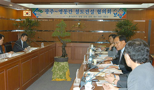 광주∼영동간 철도건설 협의회(회장 강현욱 전북도지사)는 7일 순창군청 영상회의실에서 강인형 순창군수를 비롯 광주광역시, 남원시, 영동군, 무주군, 장수군, 담양군 등 7개 해당 자치단제장들이 한자리에 모여 실무협의회를 갖고 광주∼영동간 철도건설사업 조기 추진을 위한 모든 노력을 다해나가기로 했다.