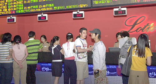 극장 내부는 갖가지 편의·오락시설과 휴게공간으로 가득하다. 전자동 무인발권시스템이 곳곳에 있지만, 매표소 줄도 길다. 영화를 선택하지 못한 이들에게 기계는 적절한 영화를 권해주지 못하기 때문이다. 각 매표소 창구는 창구의 위쪽에서 모니터를 통해 영화를 소개한다.