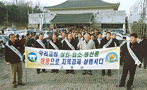 이어 참석자들은 고창읍 시가지와 고창읍 재래시장에서 ‘재래시장 이용하기 캠페인’을 벌이며 장보기 행사를 가졌다. 또 시장 인근 영세 음식점에서 점심식사를 하며 ‘내고장 음식점 살리기 운동’을 실천했다.