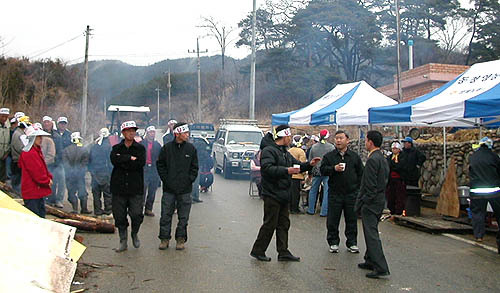 11일 금곡리 원금곡 마을 주민 1백여명은 장수군 광역쓰레기 매립장 입구에 컨테이너와 천막을 설치하고 대책을 요구하며 청소차 출입저지에 나선 것.