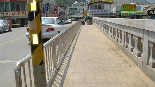 읍 관계자에 따르면 쌍다리가 신축되면서 인도에 노점상이 생겨 다리를 통과하는 보행인들이 차도로 통행했다.