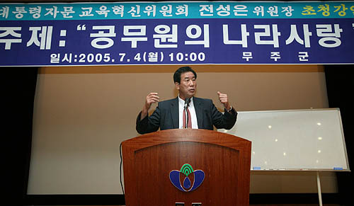 전성은 대통령자문교육혁신위원장이 4일 무주를 방문, 무주군 공직자를 대상으로 특강을 실시했다.