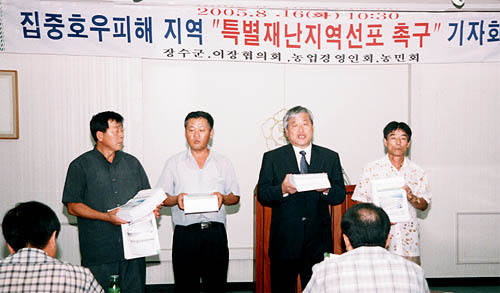 기자회견을 마친 장쟁영 군수와 대표자 4명은 이날 오후 행정자치부와 소방방제청을 방문하여 ‘특별재난지역 선포 건의문’을 전달하기 위해 상경했다.