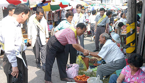 순창군 공무원들이 민족의 대명절 추석을 맞아 침체되어가는 지역경제 활성화를 위해 16일 순창읍 재래시장에서 buy(바이)-순창운동을 펼쳤다.