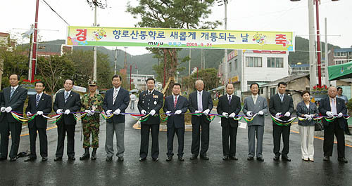 무주읍 향로산 통행로 개통식과 주민자치센터 개청식이 21일 무주군수를 비롯한 500여명의 무주군민들이 참석한 가운데 열렸다.