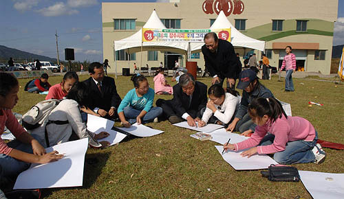 이날 대회에는 전국 각지 40여개 초등학교에서 1,000여명의 화동들이 참가하여 장수사과를 화폭에 담았다.