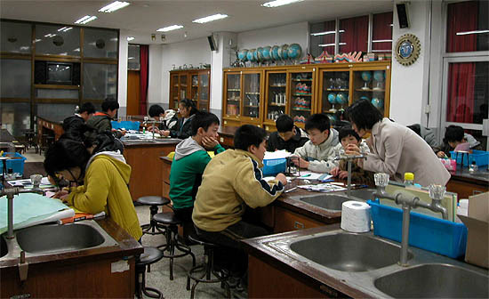 학생 20여명이 참여한 가운데 교육청 과학실에서 열린 이번 과학동산에서 학생들은 ‘액화수지와 경화제가 만나면 일어나는 현상과 손가락 목걸이 만들어 보기’등을 직접 체험했다.