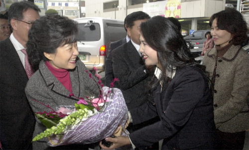 한나라당 박근혜 대표는 13일 전북도청을 예방하고 강현욱 지사와 환담을 나눴다.
