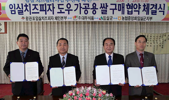 이와 함께 임실군 지사면이 고향인 김본부장은 임실에서 생산된 쌀로 쌀치즈피자를 만들겠다는 제의를 임실군에 타진, 이날 협약식을 가지게 됐다.