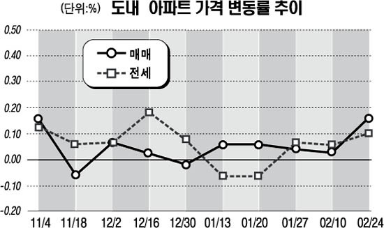 2월 전라도지역의 아파트시장은 추위가 한결 누그러지고 따뜻해지는 날씨와 함께 조금씩 꿈틀거리고 있다. 전남, 전북 지역 모두 2주전보다 오름세가 커지면서 매매 시장은 전남 0.12%, 전북 0.17% 변동률로 상승세를 보였다. 전세시장 역시 전남 0.09%, 전북0.1%로 매매와 같이 상승 움직임을 유지하고 있다.
