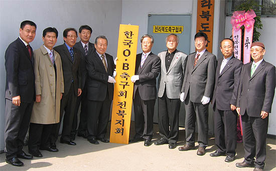 한국OB축구회 전북지회(지회장 백정지)는 15일 낮 전주종합경기장에 있는 도 축구협회 사무실에서 현판식을 갖고 침체에 빠진 전북 축구를 살리기 위해 모든 노력을 다할 것을 다짐했다.