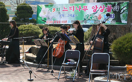 ‘문득… 그리움’을 주제로 한 제5회 느티나무 앙상블 작은음악회가 지난 17일 오후 진안군청 앞 광장에서 열렸다.