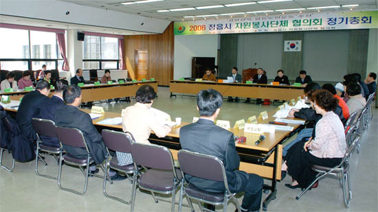 정읍시 자원봉사단체들의 협의체인 자원봉사단체협의회(회장 전병일)는 2006년 정기총회를 지난 17일 정읍시청 회의실에서 45개 단체장들이 참석한 가운데 가졌다..