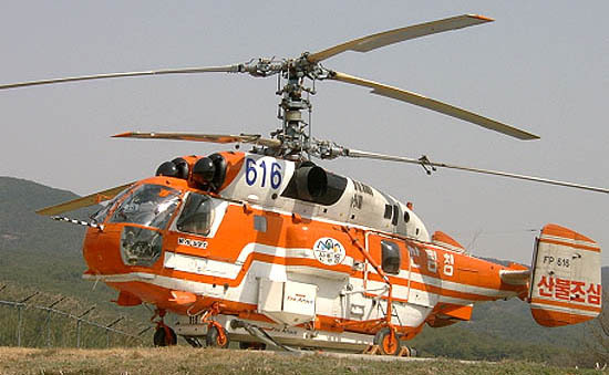 러시아에서 생산된 까모프헬기는 전장 15.9m, 폭 3.5m로 소화용수 3000ℓ를 탑재할 수 있다. 엔진마력은 4400마력으로 최고속도는 시속 230㎞이다.