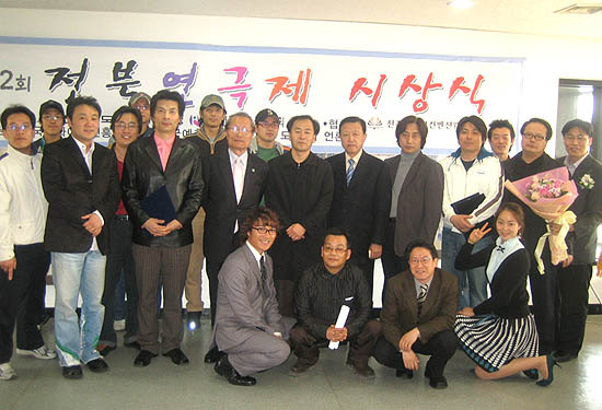 전북연극제 시상식에서 수상자들과 '이등병의 편지' 출연진들이 포즈를 취했다. (desk@jjan.kr)
