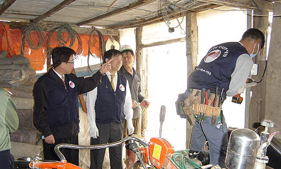 이날 봉사단 20여명은 지역사랑 실천의 일환으로 마을을 직접 돌며 형광등과 백열등을 교체하고, 작동불량으로 위험요인이 있는 누전차단기와 전원스위치를 수리하여 주는 등 전기시설에 대한 무료서비스를 실시, 주민들로 부터 호평을 받았다.