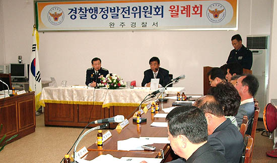 완주경찰서(서장 양희기)는 24일 주민들의 다양한 치안서비스 의견 청취를 위해 경찰행정발전위원과, 각 과·지구대장 및 파출소장 등이 참석한 가운데 행정발전위원회 회의를 개최했다.