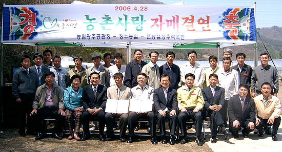 장수농업협동조합(조합장 고강영)의 주선으로 번암면 국포리 번암 뜬봉샘 상추작목반과 농협 광주공판장이 지난달 28일 1사1촌 자매결연식을 가졌다.
