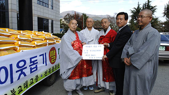 고창군 대산면 용화사(주지스님 정명운)와 신도회원들은 부처님 오신날을 앞두고 불우이웃돕기 성품으로 백미 100포대(20㎏)를 28일 고창군에 기탁했다.