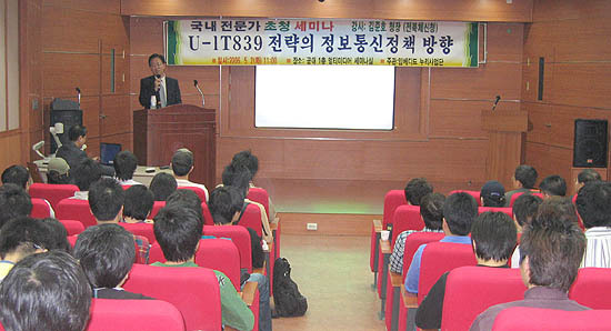 원광대 임베디드 누리사업단의 초청으로 이뤄진 이날 강연에서 김청장은 한국의 정보화 현황, 국민소득 3만불과 u-IT839전략, 정보통신부 주요 업무 추진 방향에 대해 설명했다.