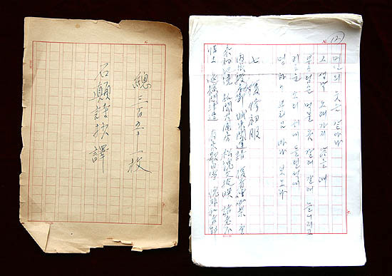 동국대에 따르면 공개된 원고들은 육당 최남선이 석전의 한시 420여 수를 수록해 놓은 '석전시초'(1940년)를 번역한 것으로, 미당은 그 가운데 130여 수를 선별해원고지에 원문을 쓰고 옆에 한글로 번역했다.