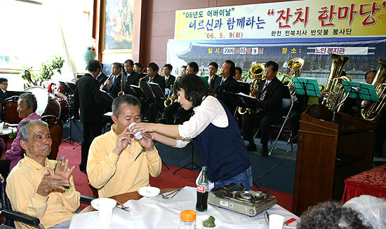 이날 행사는 사랑의 카네이션 달아드리기, 소리공연 관람, 점심식사, 기념품 증정 등의 순으로 진행됐다.