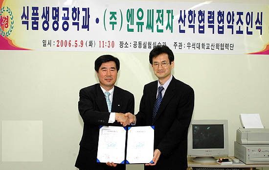 이날 협약식에는 서동석 산학협력단장과 최동성(식품생명공학) 교수를 비롯해 김종부 (주)엔유씨 전자 대표 등 양측 관계자 20여명이 참석했다.