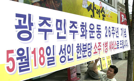 행사 당일에만 소주 30박스 가량이 무료로 제공돼 업주입장에서는 큰 부담이 되는 것이 사실이지만 강씨가 이 행사를 멈추지 않는 것은 갈수록 5·18의 의미가 퇴색해 가는 현실 때문.
