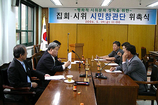고창경찰(서장 이길선)은 19일 청사 2층 소회의실에서 평화시위를 정착시키기 위해 조직된 ‘집회·시위 시민참관단’발족식을 가졌다.