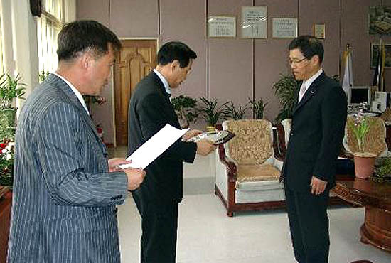 군산교육청 문원익 교육장은 군산교육과 지역사회 발전을 위해 활동해온 (주)세방기업 류병은 군산지사장에게 감사패를 전달했다.