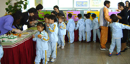 건강식품 맛보기에서는 멸치와 당근, 토마토, 떡, 우유 등 기초식품군 5가지가 선보였으며 식품 전시회에서는 힘을 내게 하는 식품과 뼈를 자라게 하는 식품, 키를 자라게 하는 식품 등 모두 50여가지가 전시됐다.