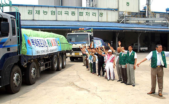 대북지원과 관련, 단독농가로는 최대규모의 쌀(80톤)을 25톤 트럭 4대에 나누어 싣고 7일 북한으로 들어가 직접 전달하는 사람이 있어 화제다.