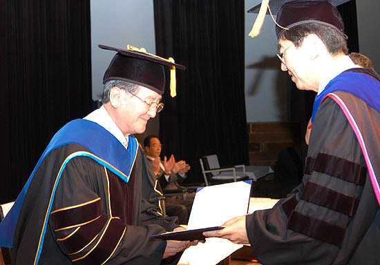 전주대는 9일 오전 교내 예체능관 JJ아트홀에서 강현욱 전북 도지사에게 명예 행정학 박사학위를 수여했다.
