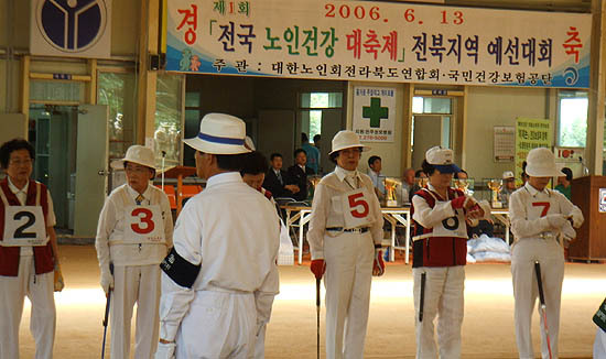대한노인회 전북연합회와 국민건강보험공단이 공동주최하는 제1회 전국노인건강 대축제 게이트볼 전북 예선전이 13일 전주시 송천동 게이트경기장에서 도내 14개 팀 270여명의 선수가 참가한 가운데 열렸다.