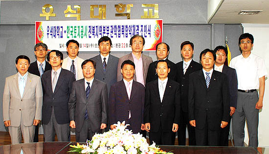 우석대와 공공기관 도내 이전 대상 기관인 한국토지공사가 14일 관·학 협약을 체결하고 본격적인 교류활동에 들어갔다.