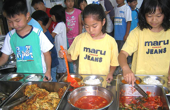 김제 비룡초등학교(교장 조재용)의 점심시간. 배식대 앞에선 김 군(3년)은 두부 2점과 고등어 조림 1점, 김치는 집게로 한번, 만두국 한 국자를 식판에 떠서 자리에 가 앉았다.