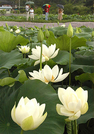 지난해 열린 제4회 하소백련축제 관광객들 백련꽃을 구경하고 있다.../전북일보 자료사진 (desk@jjan.kr)